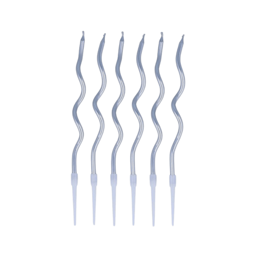 6 Silver Wavy Party Candles With Holders