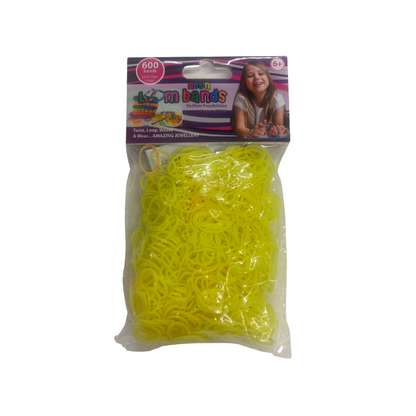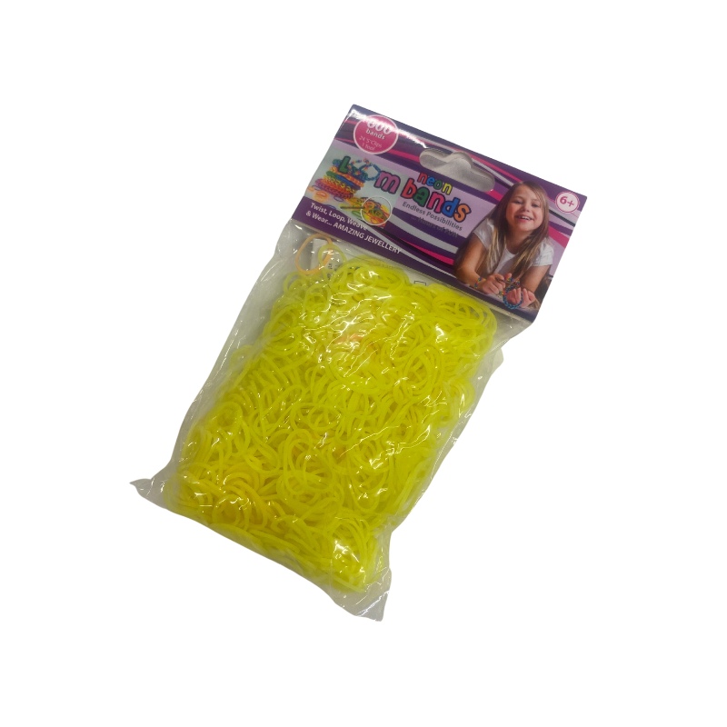Bring your arts and crafts projects to life with 600 neon yellow loom bands! Easy to use and fun to play with, these creations will add a bright and vibrant touch to any project. Get creative and let your imagination run. Take your crafting to the next level with 600 funky, neon yellow loom bands! They'll help you get wild with your designs and pack a punch of sky-high colour to your projects. Unleash your inner artist and show off your masterpieces! Each pack includes 600 loom bands, 24 'S' clips and 1 loom band creator tool. Twist, loop, weave & wear AMAZING JEWELLERY!