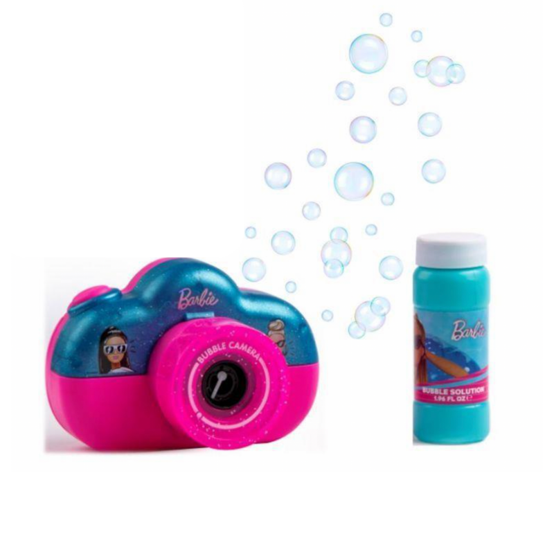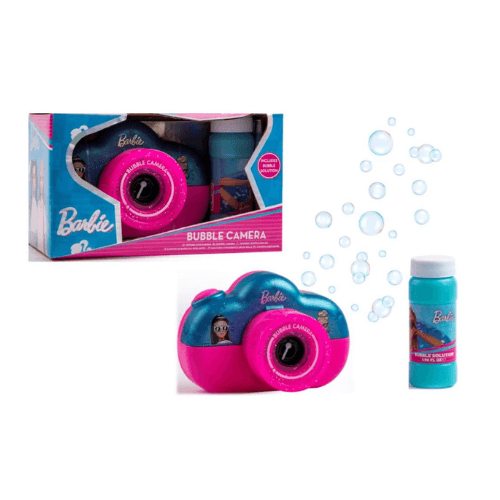 This fun and imaginative camera is shaped like a real camera and comes in a bright pink and aqua green colour with glitter accents. With a simple click of the camera button, 100’s of bubbles are released from the lens, creating a fun and playful atmosphere. The Barbie Bubble Camera also comes with a bottle of bubble solution, so kids can start creating bubbles right out of the box! This toy is perfect for indoor or outdoor play and is sure to provide endless entertainment for kids. The Barbie Bubble Camera will bring out your child's inner photographer with an added bonus - bubbles! Add some excitement to any event with this fun and interactive toy - it's sure to make lasting memories.