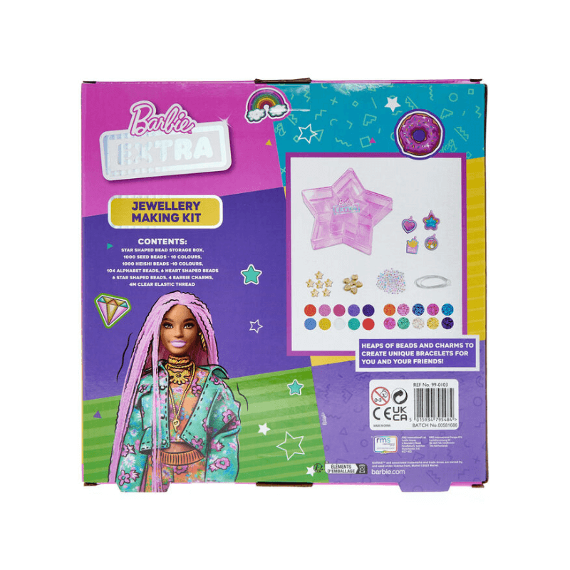 Get ready for some seriously sparkly fun with the Barbie Extra Jewellery Making kit! Channel your inner fashionista and create your own unique pieces with this extra special kit. From glittery gems to colorful beads, let your imagination run wild while crafting one-of-a-kind jewellery fit for a true Barbie Extra queen! Customize your own dazzling jewellery that shines as bright as your personality! Unleash your creativity and design unique pieces that will make you stand out from the crowd. With a variety of sparkly gems and colorful beads, the possibilities are endless. Dare to be bold and express your inner fashionista with Barbie Extra Jewellery Making kit.