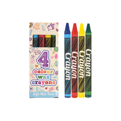 Discover a world of colourful possibilities with our Colour Wax Crayons! Perfect for unleashing your inner Monet and creating incredible art without having to fret about a mess – these crayons will brighten up your day with their vibrant colour selection! Let your creativity run wild and be an artist in no time! Four per pack. Our wax crayons make it easy to express yourself – like speaking a new language! From squiggly lines and abstract shapes to detailed portraits and landscapes, the only limit is your own imagination. So bring some skies to life in a spectacular sunset, or add a pop of colour to your favourite outfit – and do it all with a smile.
