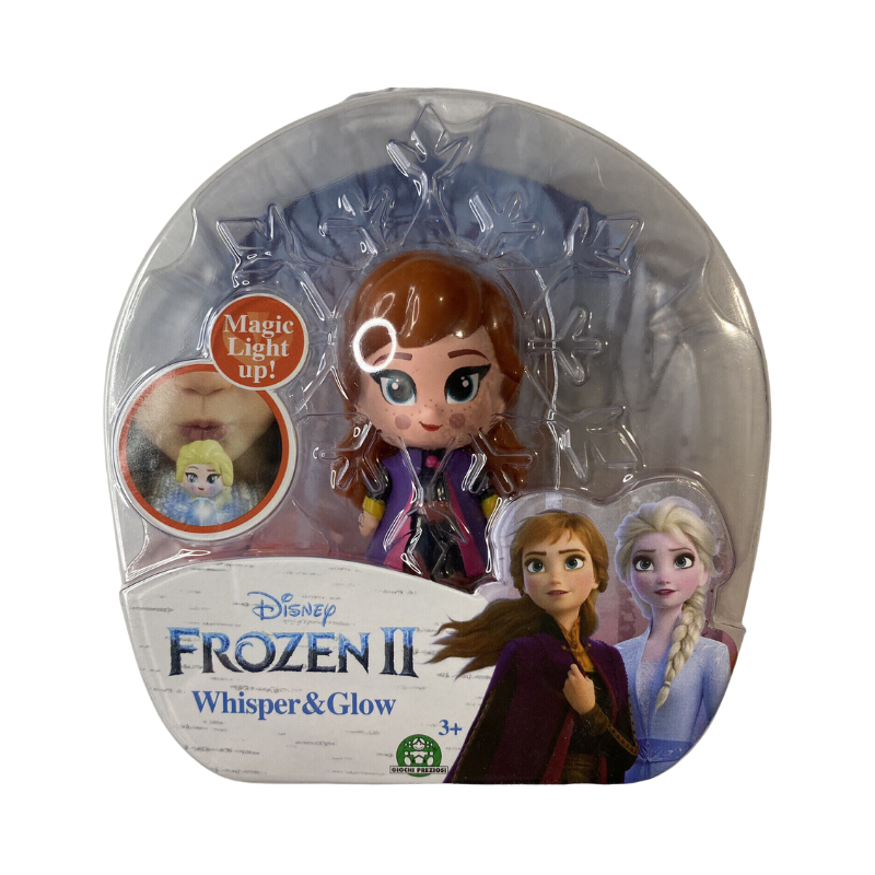 Shine bright like a diamond with the Disney Frozen II Whisper And Glow Figure - Anna Purple! This figure lights up in a dazzling 6 colors, perfect for illuminating your kingdom every day and night (no coronation required). So grab your Anna figure, choose your light - and glow! It's the perfect accessory for royal parties and everyday play. Shine a light on your bedtime stories and dress-up sessions with Anna and her cool, colourful glow!