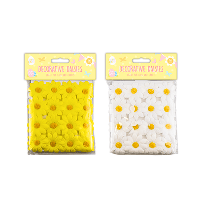 This pack of Easter Decorative Daisies contains sixteen individual daisies that are constructed from fabric and have a diameter of 4cm.Each fabric Easter daisy is complete with a plastic stem and is ideal for all Easter arts and crafts. Spread the fun and cheer this Easter with our pack of 16 decorative daisies!