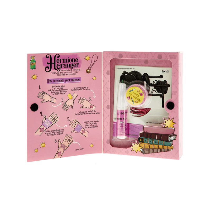 Unleash the magic with our Harry Potter Tattoo Set - Hermione Granger! Get temporary tattoos of your favourite witch and show off your love for the iconic series. Perfect for fans of all ages, this set allows you to embody the brave, intelligent, and inspiring character of Hermione Granger. Experience the world of Harry Potter like never before! Experience the magic of the iconic Harry Potter series with our Hermione Granger temporary tattoo set! Show off your love for the brave, intelligent, and inspiring character while embodying her spirit and determination. Perfect for fans of all ages, this set will transport you to the world of wizarding with just a few temporary tattoos!