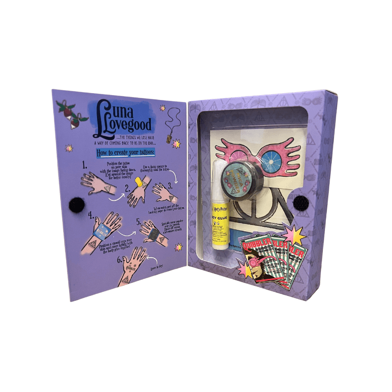 Unleash your magical side with the Harry Potter Tattoo Set! Featuring beautiful designs inspired by Luna Lovegood, this set allows you to proudly display your love for the wizarding world. Perfect for all ages and any Harry Potter fan, these tattoos are easy to apply and will surely add a touch of magic to your daily look. Transform into a spellbinding embodiment of the wizarding world with the Harry Potter Tattoo Set - Luna Lovegood. Show off your passion for all things magical with these lovely designs that are quick and effortless to apply. Elevate your everyday style with a touch of enchantment!