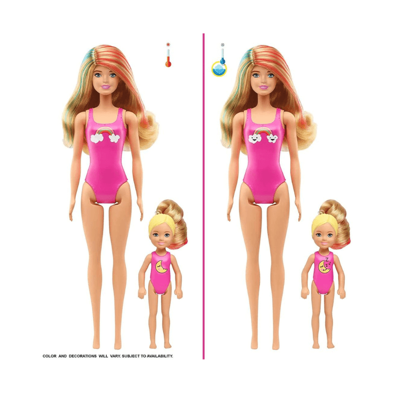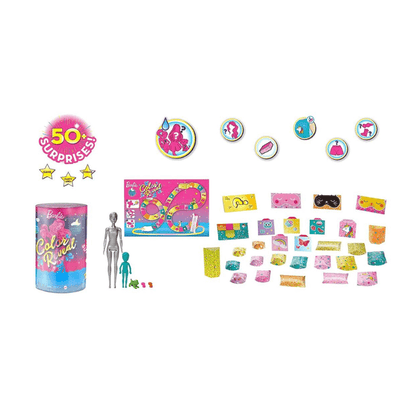 Barbie Colour Reveal dolls deliver the ultimate experience - this enormous set features more than 50 surprises that include a Colour Reveal Barbie doll, a Colour Reveal Chelsea doll and three Colour Reveal pets! There are also repeat colour-change features, a long-haired wig, clothing, accessories and storytelling pieces to play out a dream slumber party!