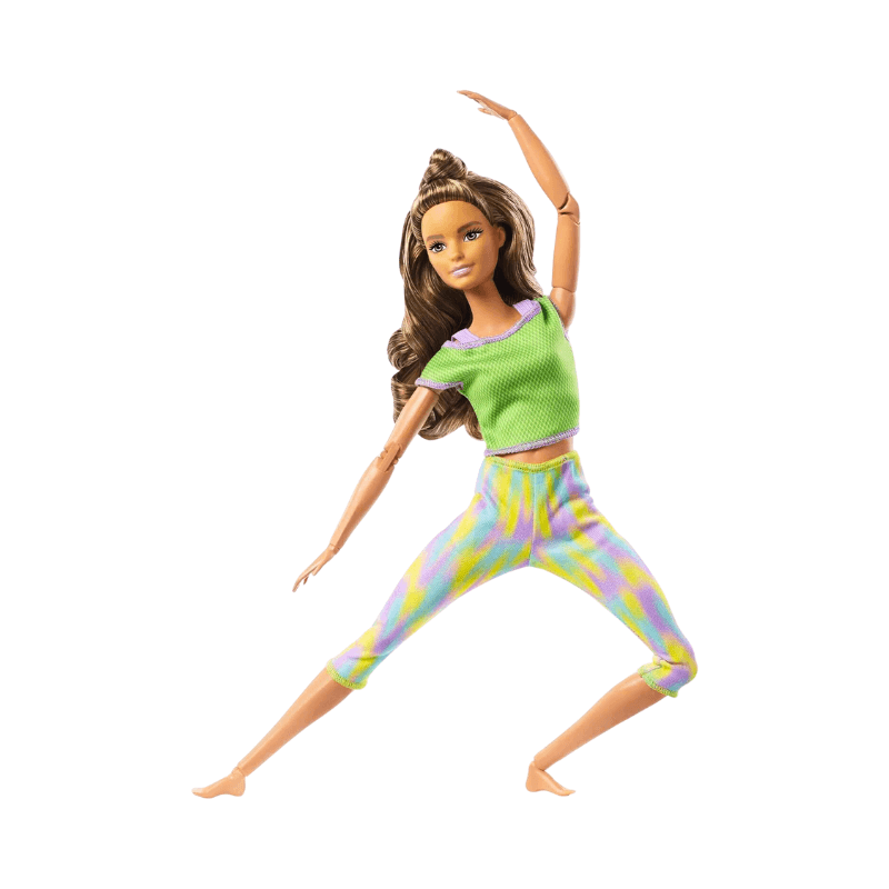 Introducing Mattel Barbie Made To Move Doll Brunette! Flaunt all her fancy footwork with this posable pal, she's ready to dance, stretch, and even flex her way into fun. She's ready for whatever action-packed adventures you cook up! Let's get moving! She's got all the moves - literally - and she's ready to show them off! Ready to groove, shimmy, leap and more, Mattel Barbie Made To Move Doll Brunette is a spectacularly posable pal who's ready to bring the good times. Let's boogie!