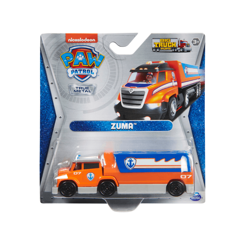 It's time to roll with Zuma and the rest of the Paw Patrol! Rev up your adventure with the True Metal Big Trucks Die Cast Vehicles. Featuring an authentically detailed design, these die-cast vehicles bring the ultimate Paw Patrol experience! Get ready for a full-fledged patrol mission and have some fun! This die-cast set is paw-sitively bursting with fun and adventure. Unleash your inner hero and relive thrilling missions with Zuma and the rest of the Paw Patrol! Don't forget to rev it up with authentically detailed designs that amp up the action. Get ready for some epic rescues!