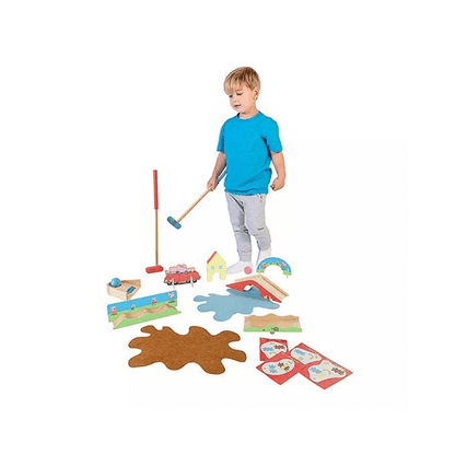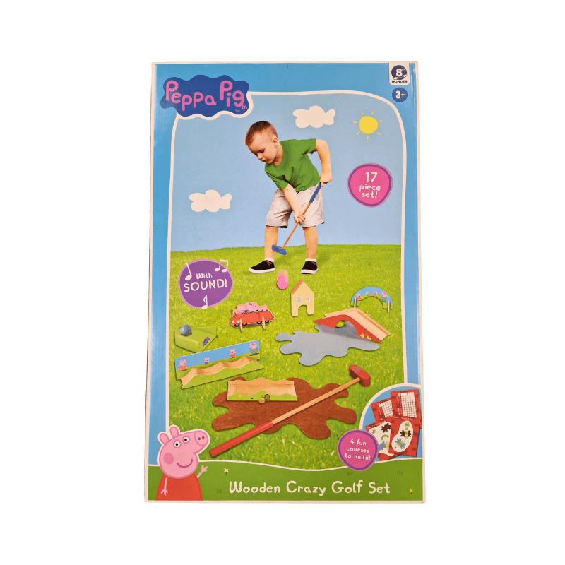 Get ready for a round of classic fun with the Peppa Pig Wooden Crazy Golf Set! With 17 pieces and 4 fun courses, your little one will have a blast making par with Peppa. Hear the winning chime on each hole - powered by your putt-putt power! A fun and challenging way for children 3+ to practice their golf swing and silly putts. Time to get silly on the greens! This Peppa Pig Crazy Golf Set is the perfect way for everyone ages 3+ to hone their putting prowess while getting a giggle out of every winning chime - powered by their own putt-putt power! 17 pieces and 4 courses - it's a hole in one for fun!