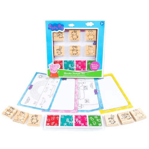 Add some fun to your craft time with this adorable Peppa Pig Wooden Stamper Set! Featuring 5 cartoon-themed stamps, you'll love stamping your projects with Peppa and her friends! Give your projects that extra special touch with some oink-tastic stamping. Featuring a Peppa-fied jungle of friends like George, Mummy and Daddy Pig, Grandpa Pig, and more, every stamp is sure to make a splash! It's the perfect way to make every piece of artwork completely pig-tastic! Let your creativity run wild with this set of five unique wood stamps! Whether you’re planning a fun greeting card or decorating a scrapbook, Peppa Pig Wooden Stamper Set will add oink-tastic character to any project. With Grandpa Pig, Mummy Pig, Daddy Pig and more, you’ll have a pig-filled jungle of fun at your fingertips! So get ready to make your art projects totally pig-sational!