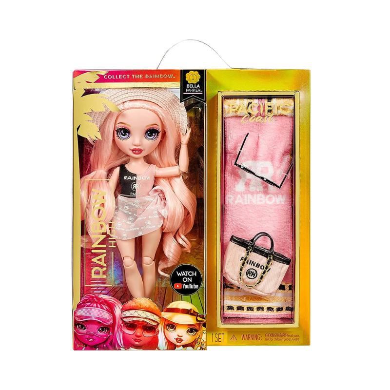 Experience the vibrant colors and fashion-forward style of Rainbow High with our Pacific Coast Fashion collection featuring Bella Parker! This exclusive line showcases Bella's unique sense of style and encourages creative self-expression. Perfect for young fashion enthusiasts, this collection is a must-have for any trendsetter! Experience the vibrant colors and fashion-forward style of Rainbow High with our Pacific Coast Fashion collection!