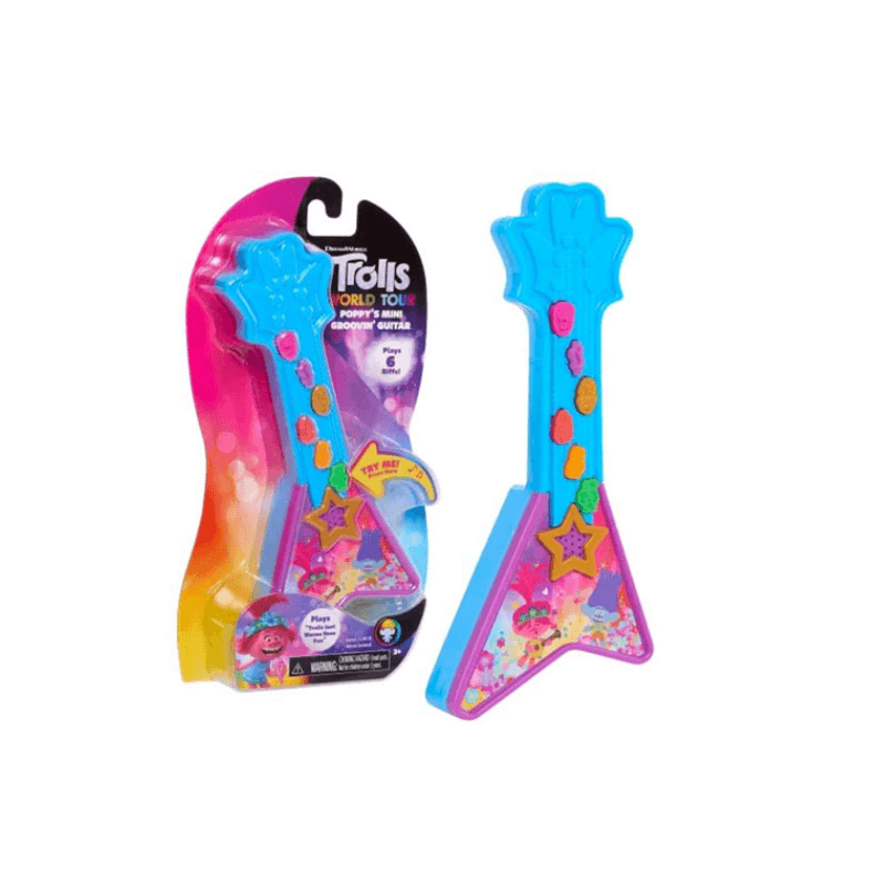 Give your little rockstar the Trolls World Tour Poppy's Mini Grovin Guitar! Perfect for your super-cute shredders, this mini guitar will have your kid jammin' like Poppy in no time! With its tiny size and vivid colors, it's the perfect compact accessory for any mini-musician. Go on, get 'em groovin'! Including the kids favourite (Troll's just wanna have fun)
