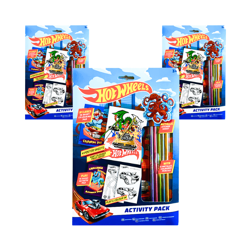 Unleash your child's creativity with the Wholesale Hot Wheels Activity Pack - (Case of 12). With a colouring pad, activity pad, and 5 metallic coloured pencils, this pack is perfect for hours of imaginative play. Plus, add some sparkle with the holographic sticker sheet. Inspire your child to design their very own Hot Wheels world!